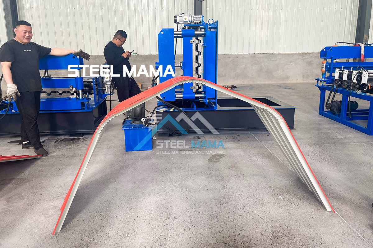 Se necesita una maquina para techos curvos aplicadas principalmente como techos de almacenes, campamentos militares, almacenes, cobertizos de estacionamiento, etc.